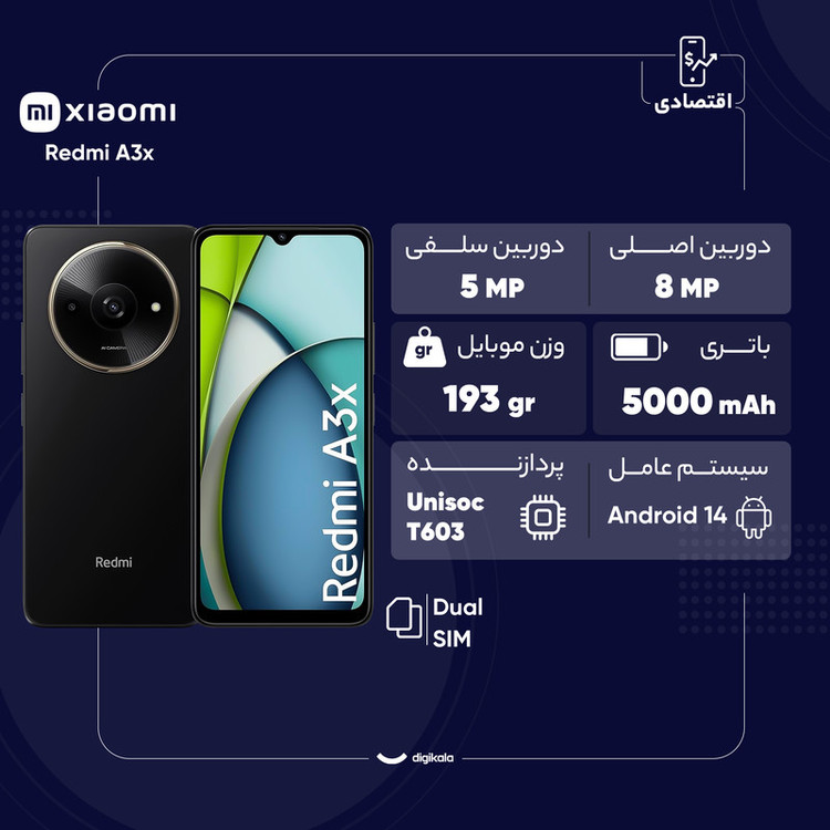 گوشی موبایل شیائومی مدل Redmi A3x دو سیم کارت ظرفیت 128 گیگابایت و رم 4 گیگابایت